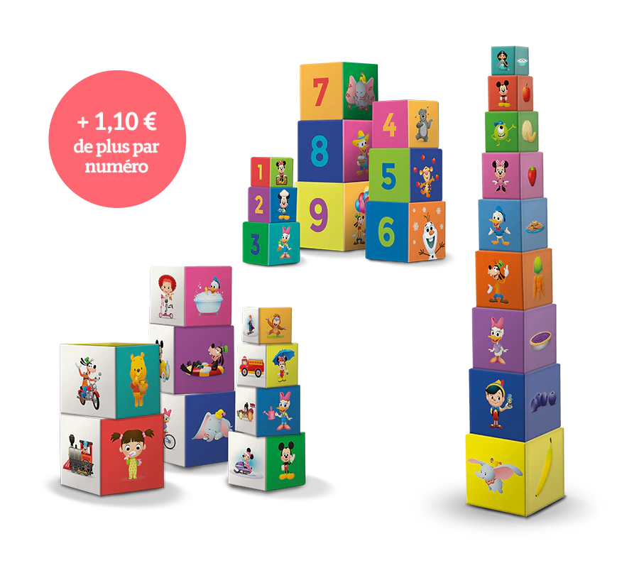 En choisissant l’Offre Premium, offre réservée exclusivement aux abonnés, pour seulement 1,10 € de plus par numéro à partir du numéro 4, vous recevrez 3 sets de cubes empilables éducatifs dans les envois nº 7 nº11 et nº14.