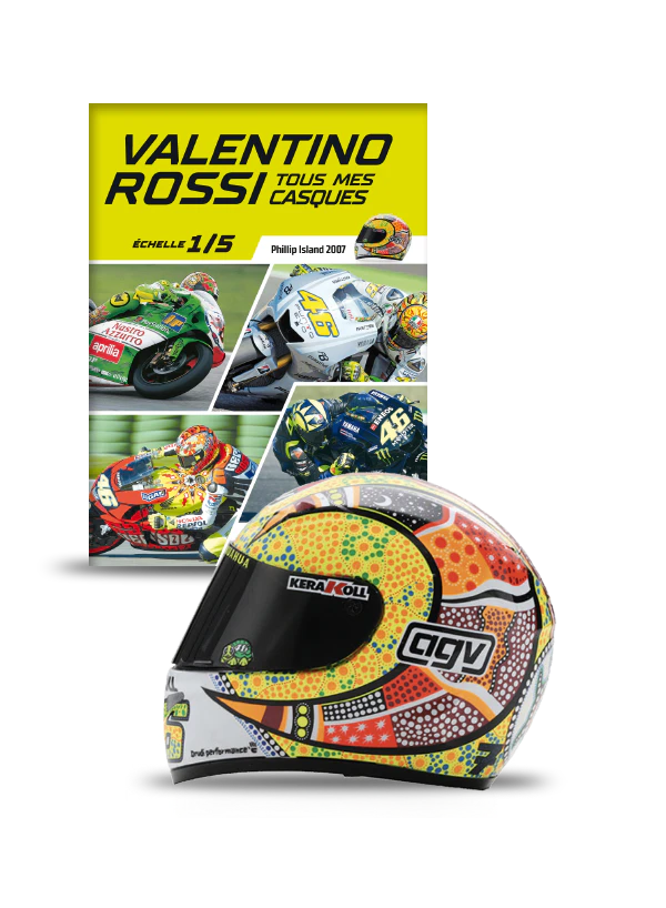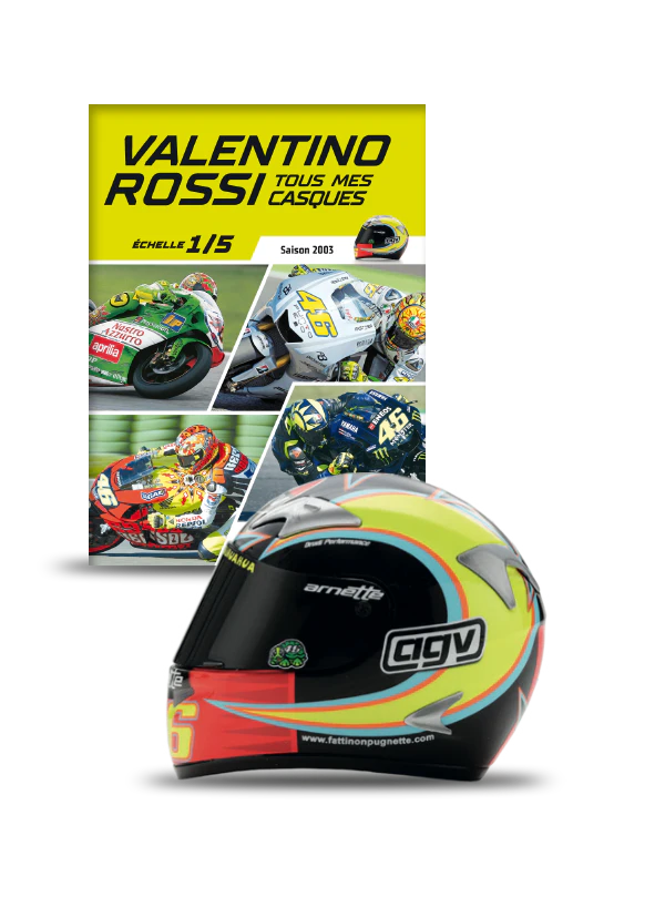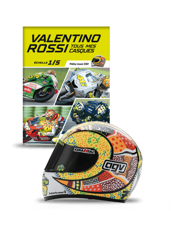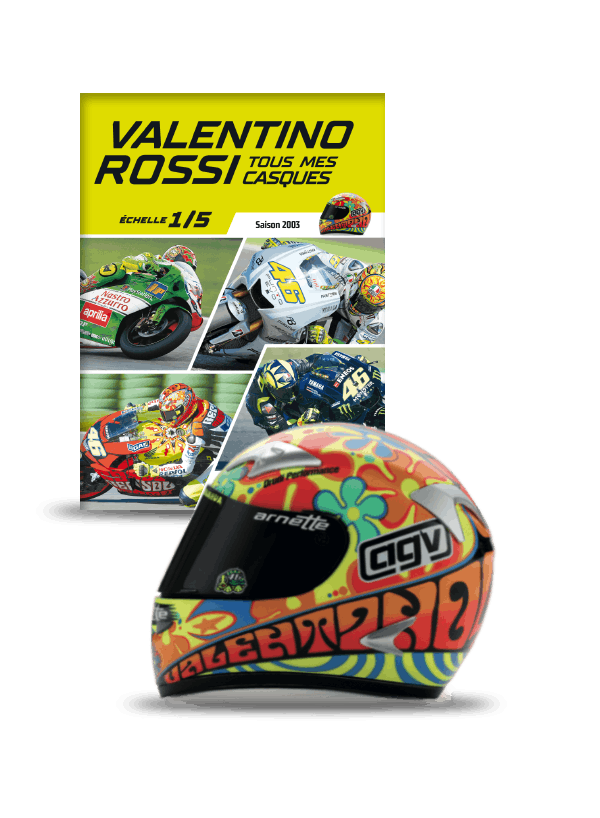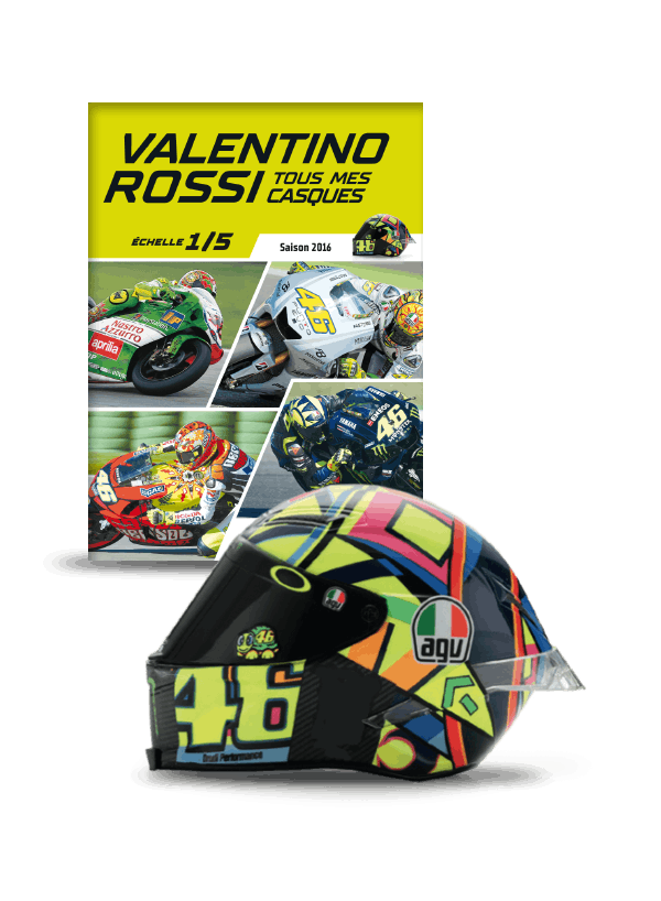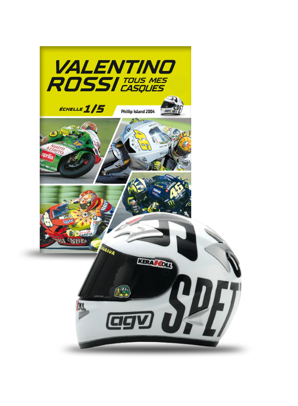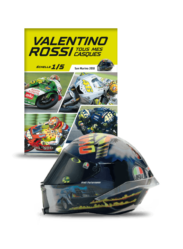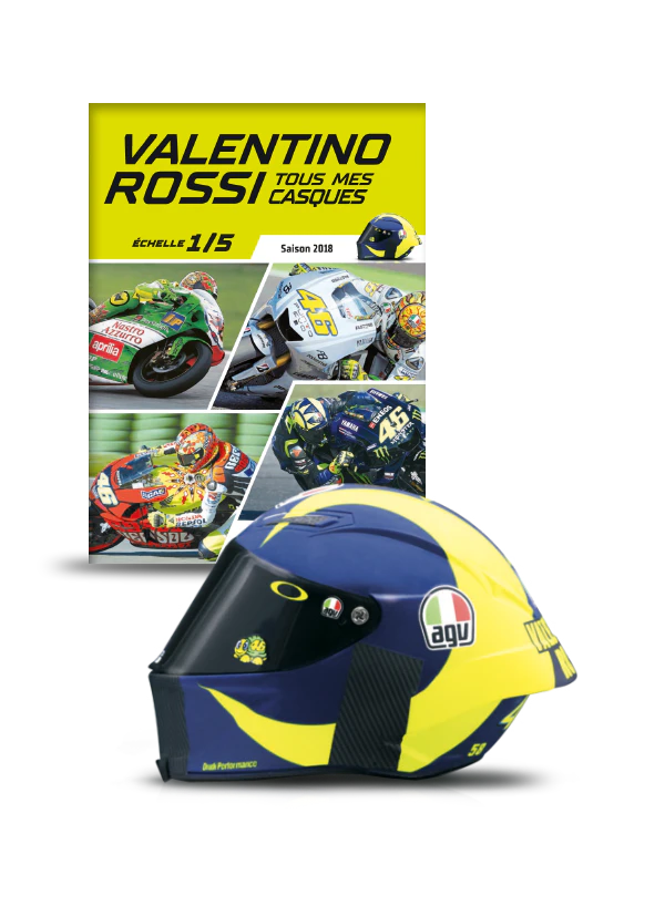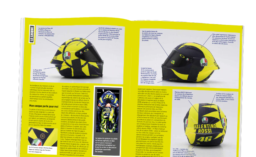 Une réplique fidèle de l'un des casques portés par Valentino Rossi lors de l'une de ses passionnantes saisons de moto. Un fascicule rempli d'informations, de photos, d'anecdotes et de détails curieux sur le champion italien, son incroyable carrière, les grands circuits, les motos, l'équipe et bien d'autres.