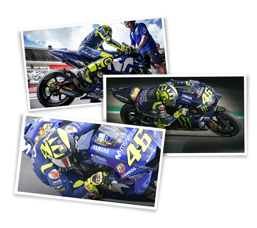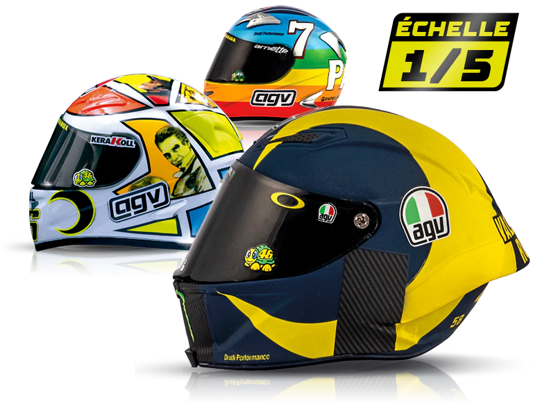 Collectionnez les casques légendaires fidèlement reproduits du champion de Tavullia.