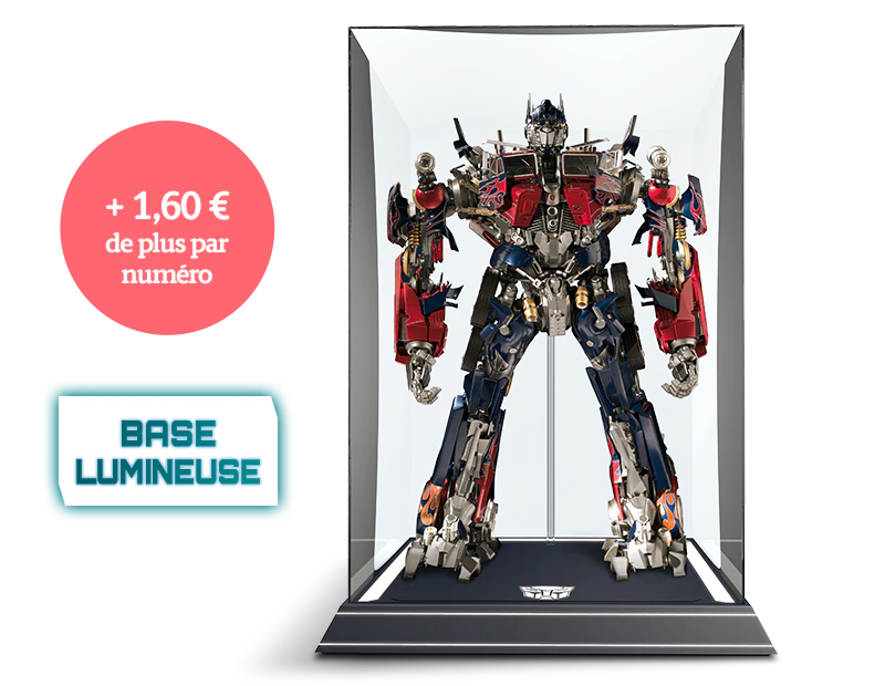 En choisissant l’Offre Premium, offre réservée exclusivement aux abonnés, pour seulement 1,60€ de plus par numéro à partir du nº4, vous recevrez une superbe base lumineuse avec vitrine pour optimus prime.