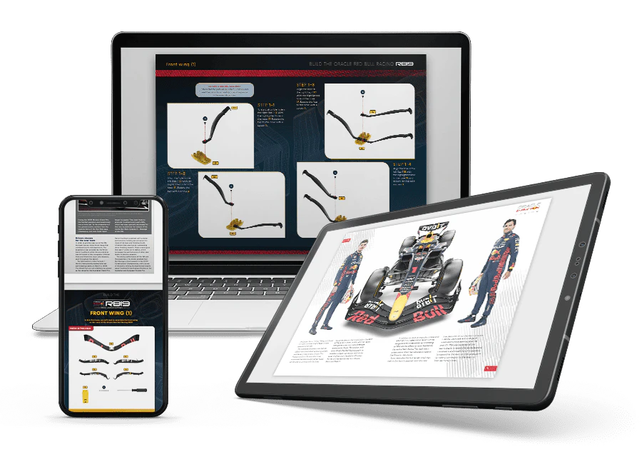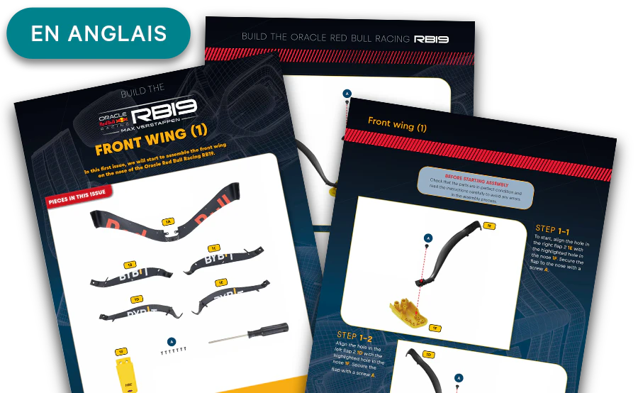 Chaque étape d'assemblage est accompagnée d'un fascicule numérique téléchargeable sur tous les appareils, contenant des instructions de construction faciles à suivre pour vous aider à construire votre RB19. Tous les outils nécessaires sont inclus dans votre abonnement.
